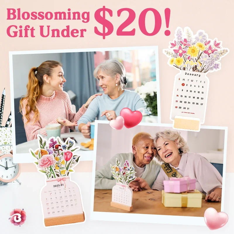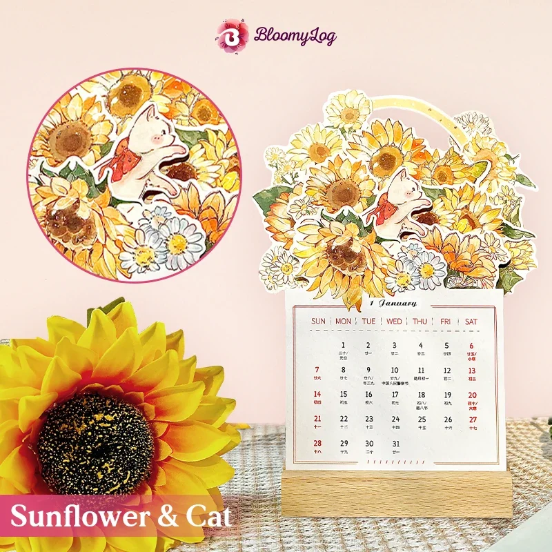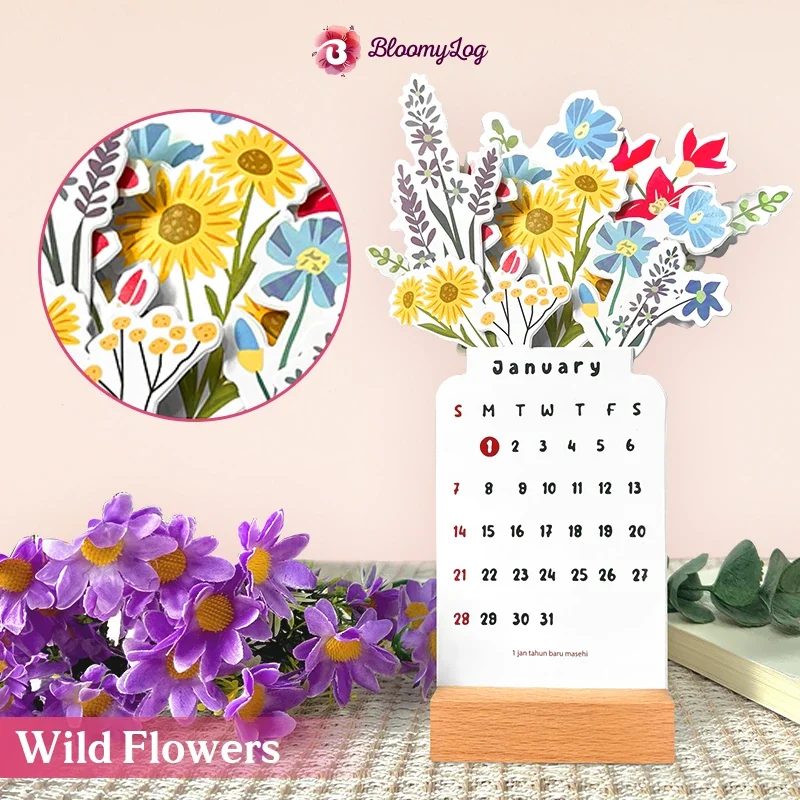 Package Includes: 1 x 2025 Bloomy Flower Calendar + Wooden Stand