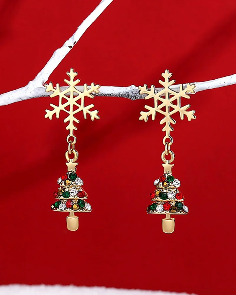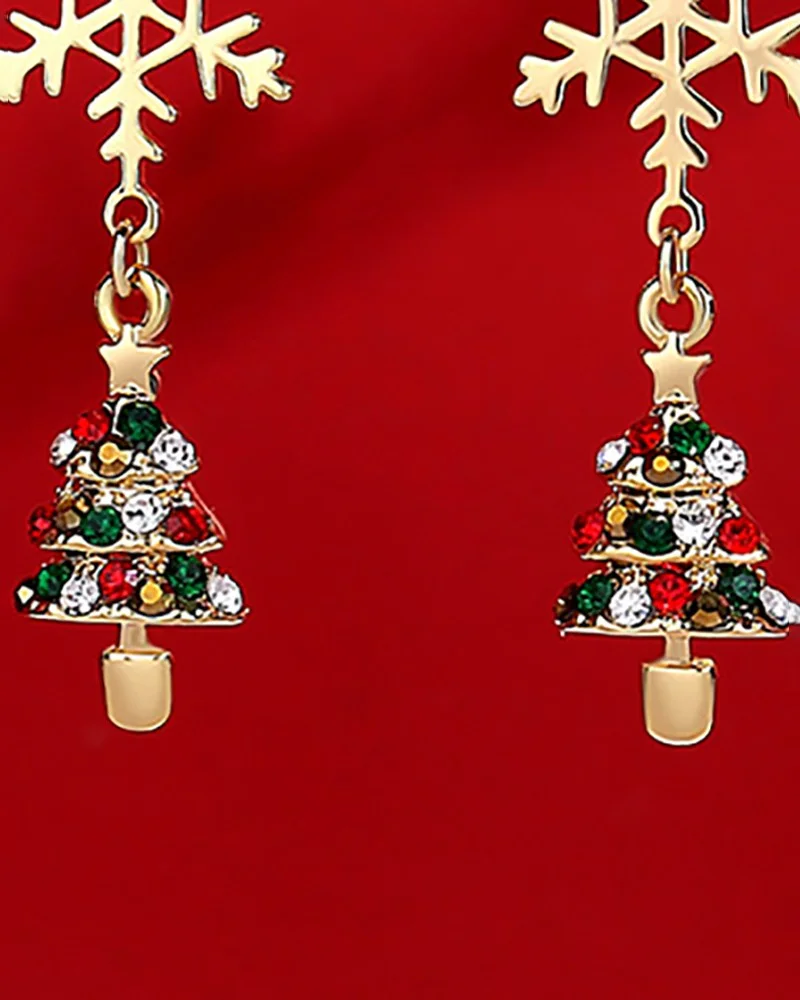 Christmas Tree Pattern Snowflake Shaped Drop Earrings
