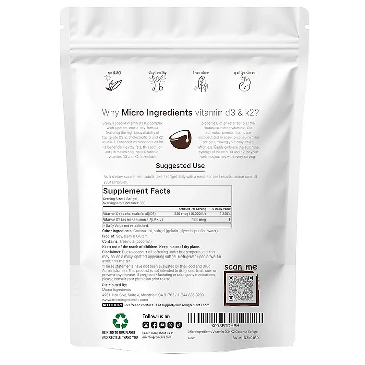 Experience the incredible benefits of our expertly formulated Vitamin D3 + K2 supplement. Designed to support your overall health, this potent combination ensures that you get the most out of these essential nutrients.