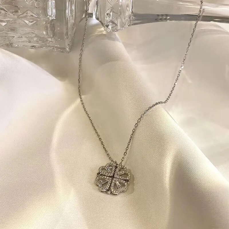 - 💕 One necklace with two way of wearing:This necklace has two design in one necklace,open with 4 heart,but closing is a four-leaf clover,perfect pendant necklace for lady who has difficulty choosing.