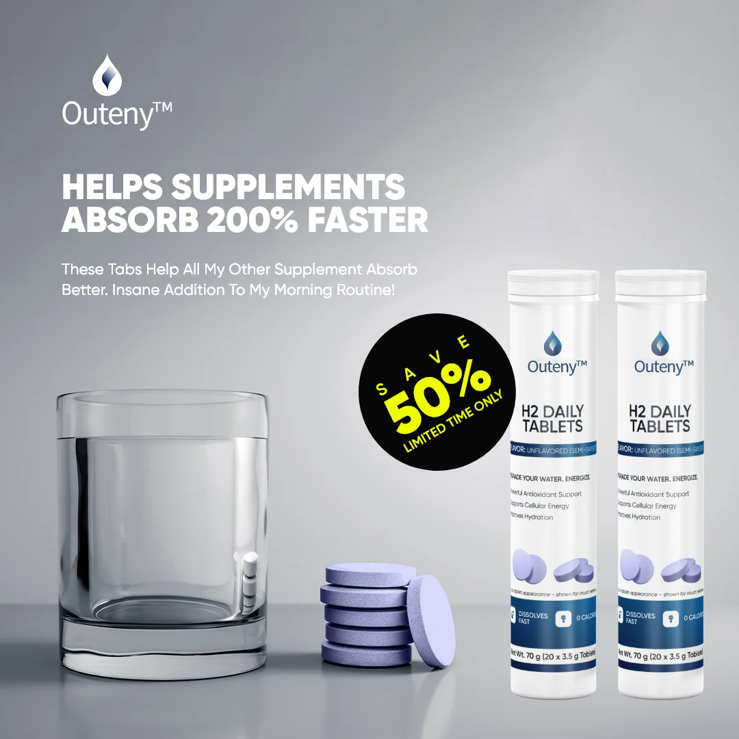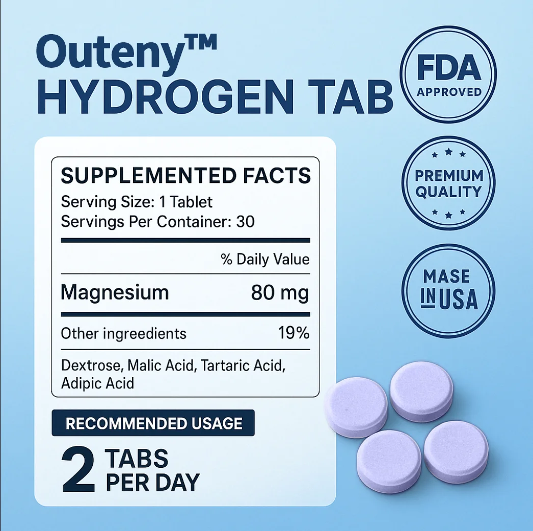 Outeny™ Hydro Plus Tabs infuse your water with ultra-pure molecular magnesium—one of the most powerful antioxidants on the planet—to energize your cells, clear brain fog, and help your body recover faster from stress and fatigue. Feel sharper, lighter, and more alive with every sip.