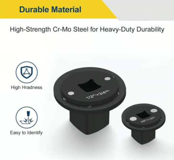 - Durable Cr-Mo Steel with Laser Markings: Constructed from high-strength Cr-Mo steel for superior durability and impact resistance, the drive ratchet adapter set are coated with rust-resistant black phosphate. Laser-etched size markings provide quick and accurate identification, ensuring efficiency during demanding tasks.