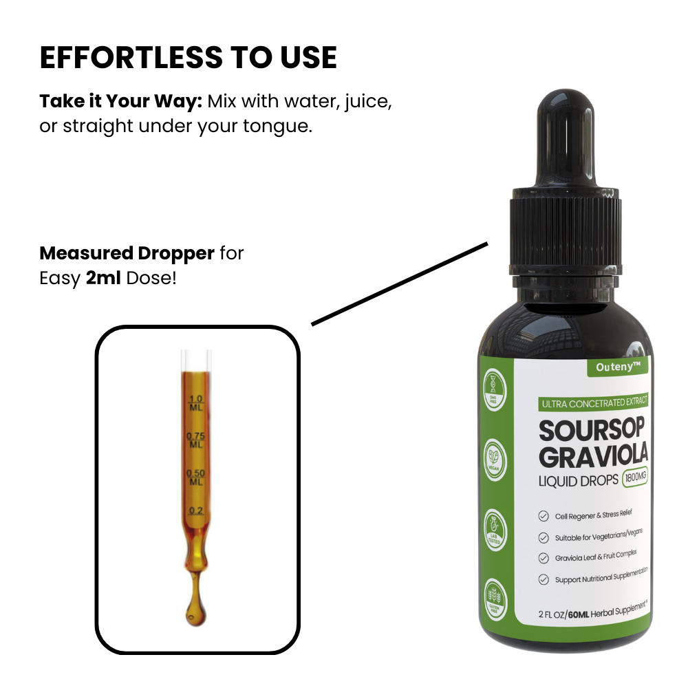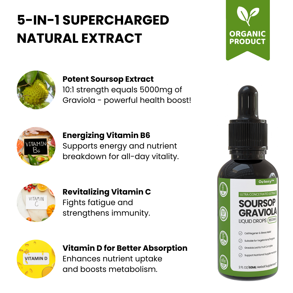 Experience the highest level of purity with Outeny™ Organic Soursops Extract, meticulously sourced from certified organic farms. We ensure that every drop delivers the full power ofsoursops, untouched by additives or preservatives, so you can trust you're getting nature's best in its most potent form.