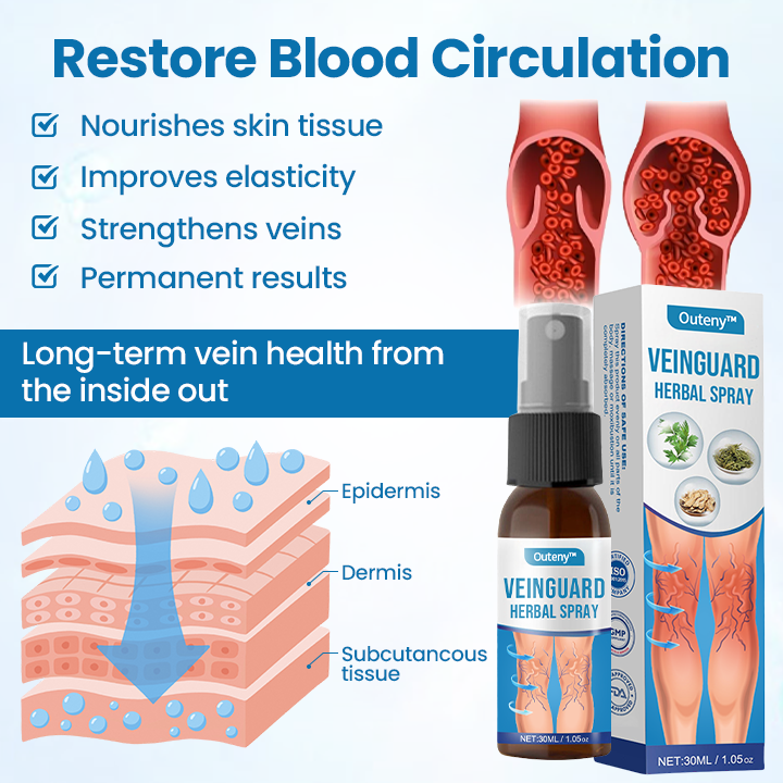 Outeny™ VeinGuard is the first FDA-certified micro-mist spray with a clinically proven 99.2% success rate for treating varicose veins at home. Thanks to its innovative Micro-Mist Technology, it penetrates up to 300% deeper into tissue compared to conventional methods, showing visible results within 48–72 hours. Skip costly procedures and care for your veins long-term — easily and comfortably from home.